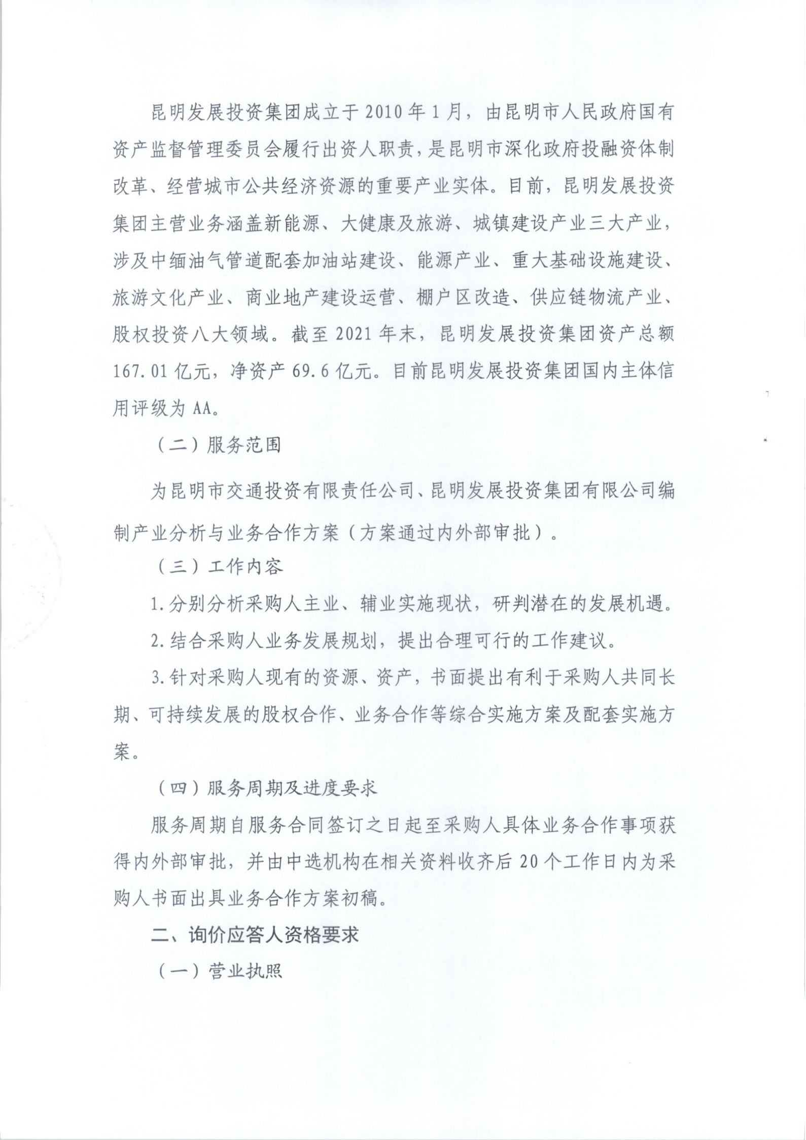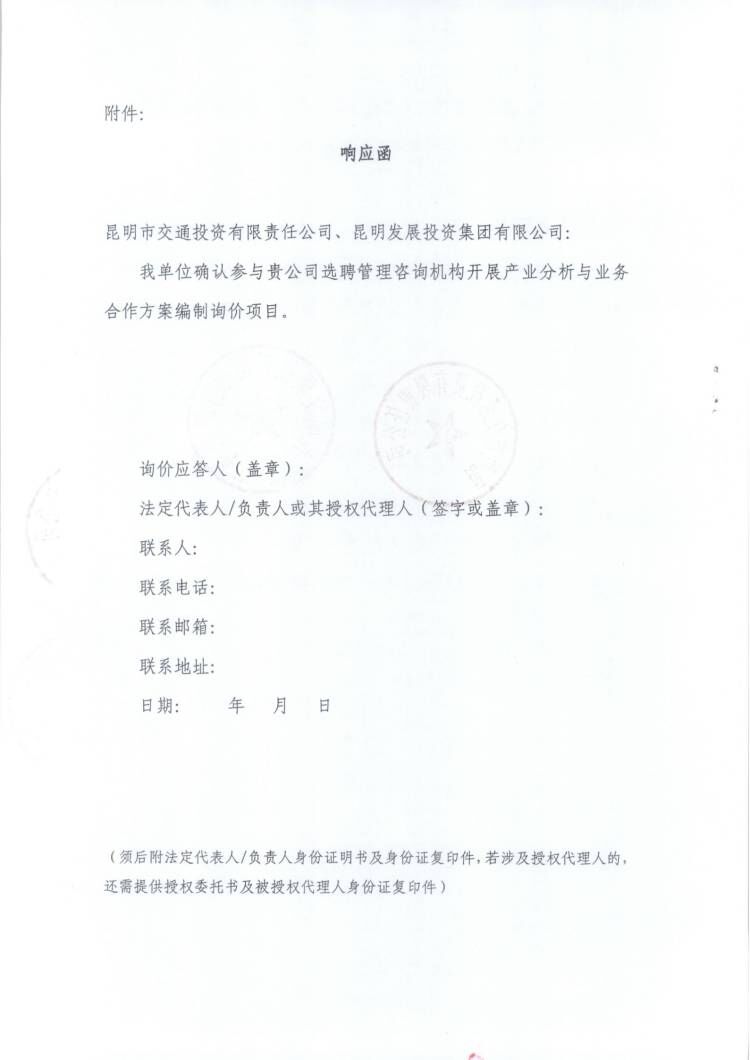 金沙赌场 有限责任公司昆明发展投资集团有限公司关于共同选聘管理咨询机构对开展产业分析与业务合作方案编制询价公告