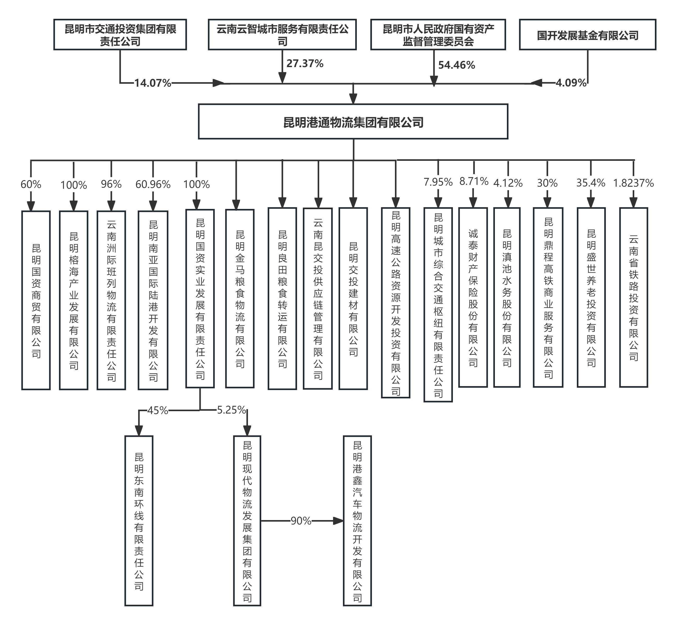 昆明港通物流集团有限公司(曾用名:昆明市国有资产管理营运有限责任公司)是市国资委履行出资人职责并实际控制的国有控股企业。国内主体信用评级为AA。现由金沙赌场 (以下简称“金沙赌场 ”)代管,于2025年1月21日更名为“昆明港通物流集团有限公司”(以下简称“港通物流集团”或“公司”)。公司于1992年7月组建,注册资本为29.28亿元。经过33年的发展,昆明港通物流集团有限公司作为昆明市境内高铁项目投融资主体,主要承担了云南省高铁项目建设“八入滇、四出境”中云桂、沪昆、昆玉及东南环线四条铁路、昆明高铁新南站站房及配套道路、呈贡新城东外环中路及其上部道路等重要基础设施投融资建设任务。经过近年来的发展,确立了以铁路项目投资建设、城市资源开发服务、现代物流、股权投资为主的业务布局,业务板块之间具有协同效应。公司控股参股公司共计14家,其中:重要子企业5家(全资子公司2家、控股子公司3家),参股公司9家。
